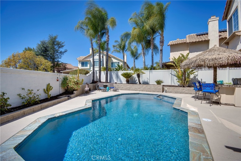 Entertainers Dream oasis located in Temecula's highly desirable Redhawk community! Enjoy your resort style Saltwater Solar heated Pool & Spa, Outdoor Kitchen Cabana, covered Patio with custom solar shades and beautifully manicured lawn. Enter into the formal living room/dining room and continue through hallway where you will find a great Flex Space for home Office or Bar; a beautifully remodeled Kitchen, featuring white cabinets, gorgeous quartz countertops and stainless steel appliances. Fabulous open floor plan where Kitchen opens to Family Room with fireplace and exits to an amazing resort style outdoor space! Multi generational living made possible with downstairs bedroom plus bath, currently used as an office. Laundry Room features plenty of cabinets for overhead storage, a sink and leads to 3 car attached garage with new door. Upstairs you will find an elegant owners suite and spa style bath with jetted soaking tub and spacious walk in closets. Wonderful separation between secondary bedrooms and Master Bedroom. Residents enjoy Community Parks and Playground area, exceptional schools, and Redhawk Golf course that meanders through the neighborhood. LOW HOA and no Mello Roos. See Virtual Tour https://my.matterport.com/show/?m=3SiFBjscpgH