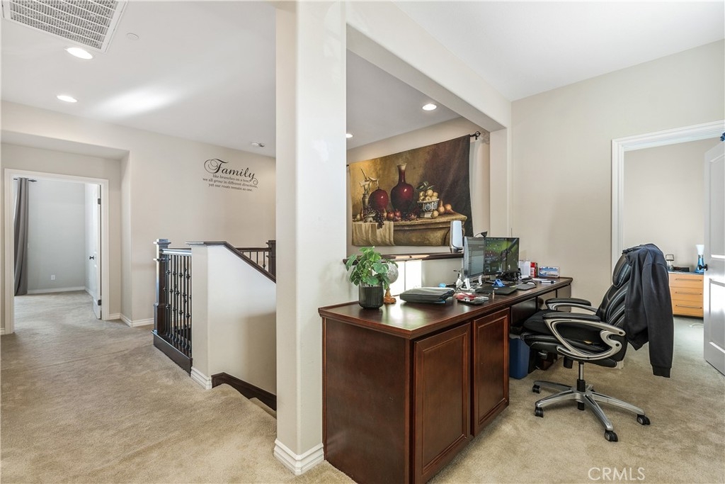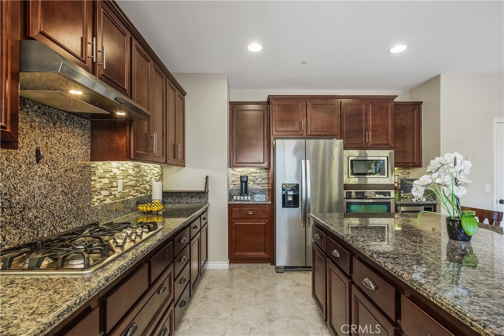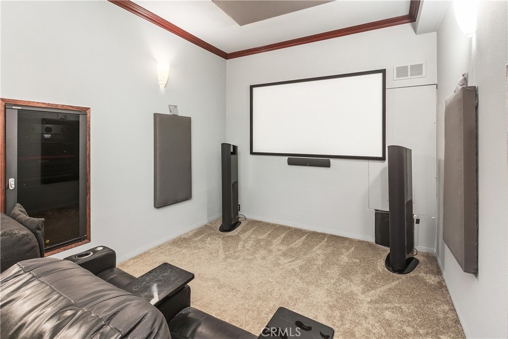Beautiful and meticulously maintained home in the desirable Redhawk area of Temecula with breathtaking mountain views and frequent hot air balloon sightings from the backyard. Located in a quiet neighborhood of newer Hemingway homes, this property sits on a premium lot offering privacy with no neighbors in front and endless views behind. A covered porch entry welcomes you into a spacious and open home with 10 ft ceilings. The main floor features a bedroom with a full bathroom, ideal for guests or in laws. Entertaining is effortless in the large open kitchen with an oversized granite island, Espresso wood cabinetry, stainless steel appliances, wine refrigerator and a glass walk in pantry. There is an additional eating area in the kitchen that opens to the great room with a gas fireplace, sliding doors to the patio and also a separate dining room. Enjoy football games and movie nights in the bonus theater room featuring tiered flooring, soundproofed walls, and rear speakers. Upstairs offers four generously sized bedrooms, a laundry room with a deep sink and a large built-in tech center. The open and bright primary suite features dual closets, a private second floor deck with a retractable awning makes it perfect for morning coffee or sunset views. The spa like primary bath includes a large walk-in shower, jetted tub, and vanity seating area. The bonus is an oversized bedroom with a walk-in closet or may be used as a game room, craft room or home gym. The backyard is designed for entertaining with upgraded stone hardscaping, an Island with a built in Weber gas barbecue, a gas fire pit with blue glass, circular seating, planters and a covered patio. Additional features include owned solar system, tankless water heater, a Halo whole house water treatment system, rain gutters, enhanced drainage, drip irrigation, and 2 storage sheds. The garage offers epoxy coated floors, a Level 2 EV charger, and overhead storage. This exceptional home combines privacy, comfort and resort style living an is in the award-winning Temecula School District including highly-sought after Great Oak High School! Located near the golf course, parks, shopping, Pechanga Resort Casino, wineries, low HOA, and easy freeway access so hurry to see this beauty!