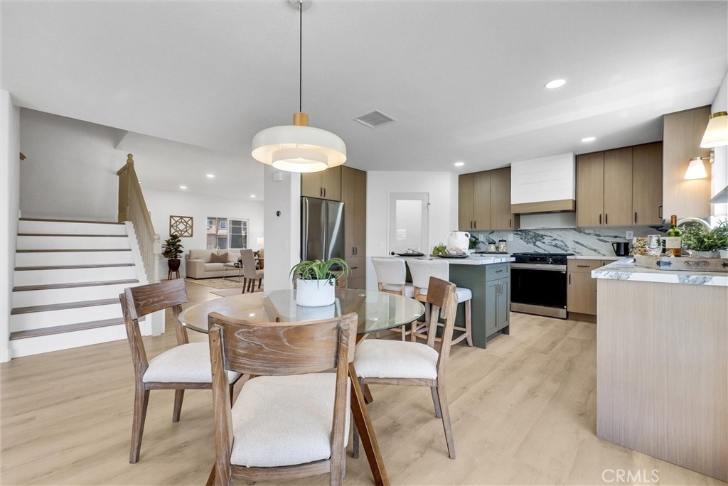 As you walk through the sizable front porch and main entrance, you are greeted by an airy formal living room that effortlessly flows into the formal dining area. The kitchen features ceiling height cabinets, quartz counters that showcase emerald green veining, a spice rack ledge made from the same quartz slab, a walk-in pantry and an island for casual dining. The island houses a high end microwave drawer and additional storage. The new double french doors open up to a covered patio, perfect for dinner parties and indoor/outdoor living. Beyond the patio are new pavers and a fireplace, where you can unwind after a long day or sip on wine while watching the sun set. The backyard comes with new sod that provide ample running and playing space for kiddos and furry friends. There are fruit trees and mature greenery surrounding the perimeter of this idyllic backyard. With an automatic sprinkler system already set up, your yard will stay beautiful all year round with minimal maintenance. Both bathrooms upstair have new floor, vanities, lights and fixtures. The oversized sliding closet panels in the three bedrooms are all individualized and custom. Upstairs also features an expansive bonus room that could be perfect for a designated movie space, family and game room, workout space or all of the above. The possibilities are endless.