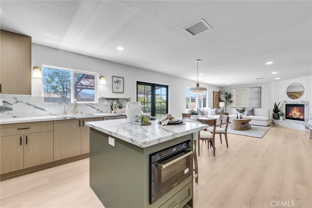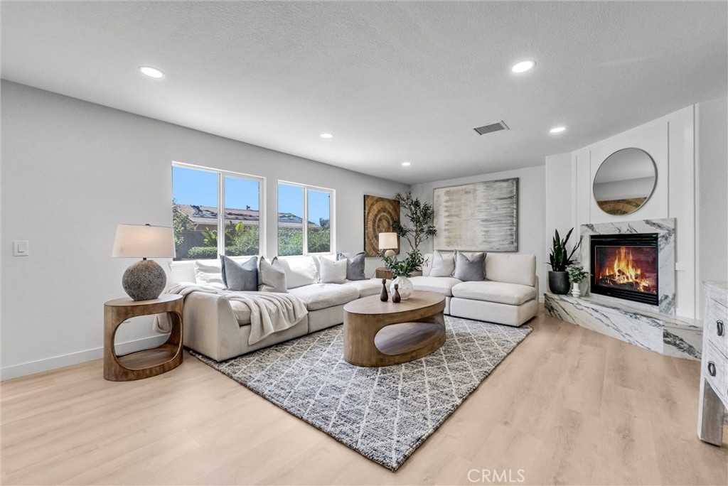 NEW PRICE IMPROVEMENT! Nestled in the gentle rolling hills of south Temecula and perched atop an elevated cul-de-sac, this 4 bed, 2.5 bath home has been thoughtfully reimagined and fully remodeled. Some of the notable transformations include new luxury vinyl flooring throughout, a top to bottom new kitchen with custom hood, quartz countertop and backsplash, a matching quartz fireplace surround with paneling above, new tiles in bathrooms, new pavers outside, fresh paint inside and out. LOW TAXES, LOW HOA. Unobstructed views of fireworks on holidays from backyard. Walking distance to Great Oak HS.